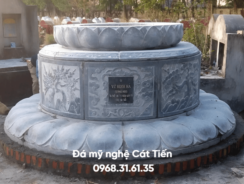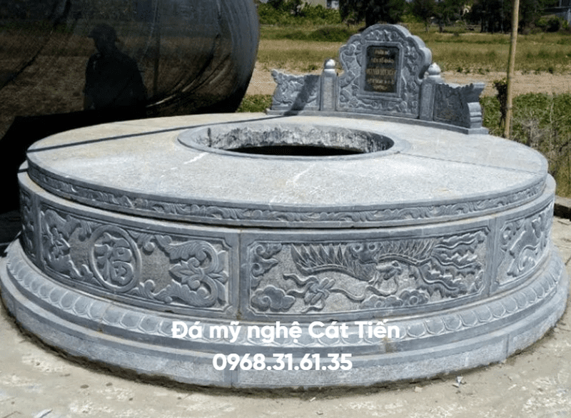 - Ưu tiên hoa văn chạm khắc tinh tế, hạn chế họa tiết rườm rà để giữ vẻ trang nghiêm cho mộ tròn.