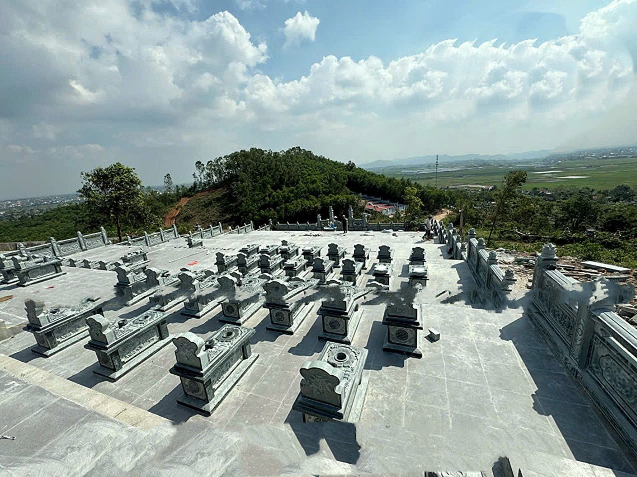 Khu lăng mộ đá CT90 tại Vĩnh Lộc – Thanh Hóa là công trình tâm linh được xây dựng quy mô, sử dụng đá xanh tự nhiên nguyên khối, đảm bảo độ bền cao, chắc chắn và thích nghi tốt với điều kiện thời tiết ngoài trời. Khu lăng mộ được quy hoạch trên nền cao, không gian rộng thoáng, bố trí đồng đều các mộ phần đá, bia mộ, bệ thờ và lan can bao quanh, tạo nên tổng thể trang nghiêm, ngay ngắn và chuẩn phong thủy. Các chi tiết hoa văn được chạm khắc sắc nét, kết hợp giữa kỹ thuật thủ công truyền thống và gia công hiện đại, mang lại giá trị thẩm mỹ lâu dài. Với vị trí hài hòa cùng cảnh quan đồi núi tự nhiên, khu lăng mộ CT90 thể hiện sự tôn kính, tri ân tổ tiên và mong cầu sự bền vững, an yên cho các thế hệ con cháu.