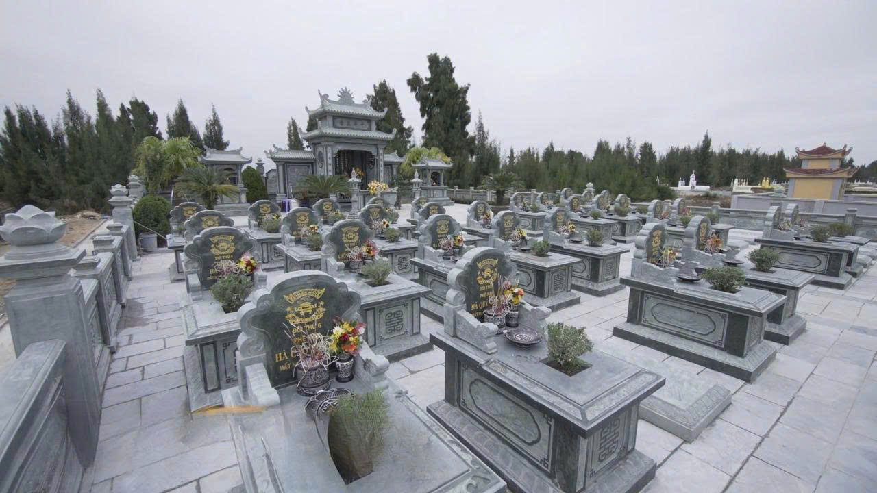 Gam màu xám trắng mang lại cảm giác thanh tịnh, nhẹ nhàng, phù hợp với không gian tưởng niệm tại Gia Lộc, Hải Dương. Công trình đáp ứng tốt yêu cầu về thẩm mỹ, độ bền và sự ổn định lâu dài.
