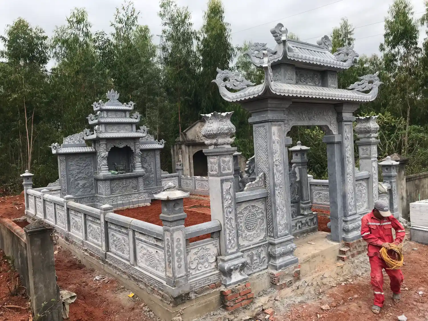 Khu lăng mộ đá xanh đen – CT27 là công trình thi công tại Thanh Trì, Hà Nội với kiến trúc lăng mộ đá hai mái, cổng khu lăng hiên ngang, sang trọng.
