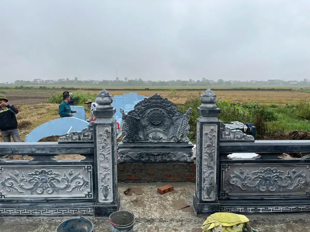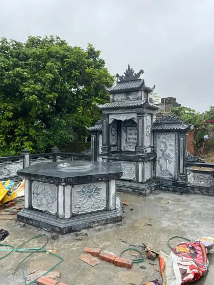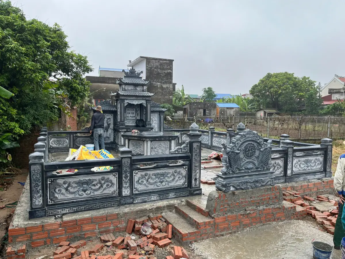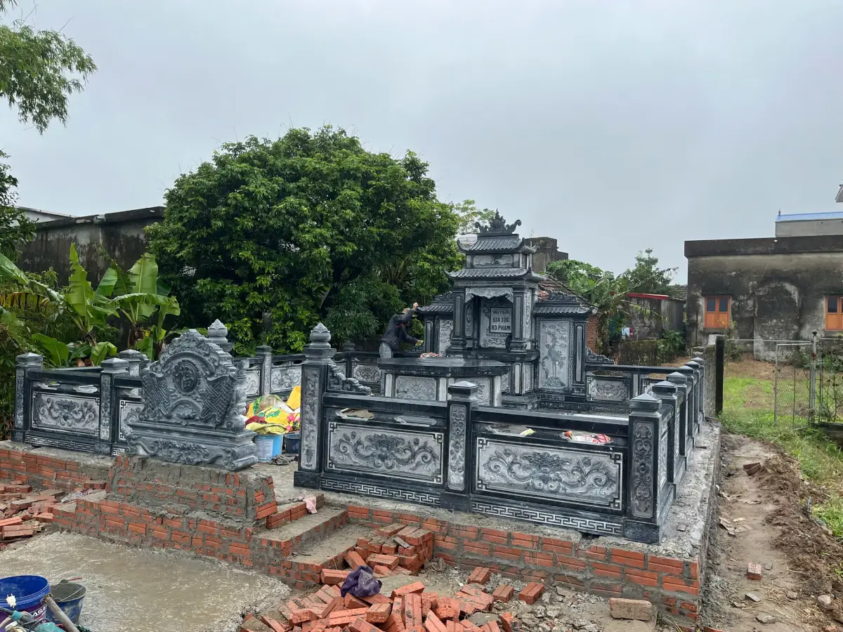 Khu lăng mộ đá xanh đen đậm được thi công tại Hải Dương bởi đơn vị Đá Mỹ Nghệ Cát Tiến năm 2025.