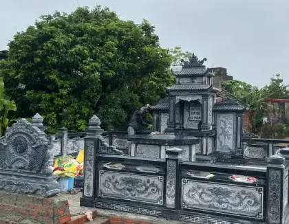 Khu lăng mộ đá xanh đen đậm là lựa chọn lý tưởng cho các gia đình, dòng tộc mong muốn xây dựng một không gian tưởng niệm chuẩn chỉ, gắn kết các thế hệ và thể hiện lòng biết ơn sâu sắc tới tổ tiên.