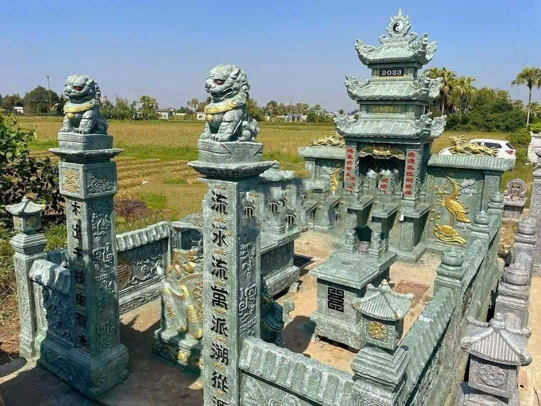 Màu xanh đen trầm thể hiện sự ổn định và bền vững, rất phù hợp với các khu lăng mộ có yêu cầu cao về yếu tố phong thủy tại Thạch Thành, Thanh Hóa.