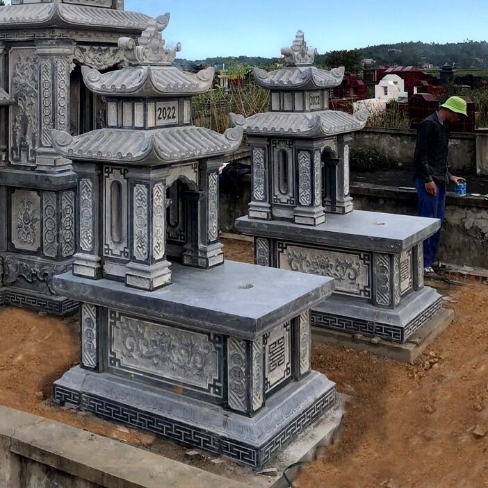 Lăng mộ đá xanh đen – CT38 là mẫu sản phẩm được Đá Mỹ Nghệ Cát Tiến chế tác và thi công tại Phú Thọ năm 2022 có thiết kế hai mái đao trang nghiêm, chạm khắc hoa văn chữ thọ đơn giản nhưng vẫn đảm bảo được tổng thể hài hòa phong thủy và thiên nhiên.