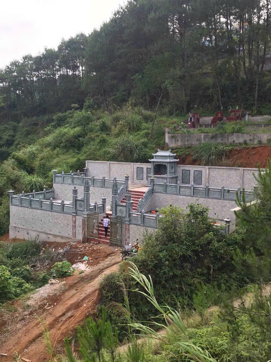Khu lăng mộ gia đình là một công trình tâm linh trang nghiêm, vững chãi, kết hợp hài hòa giữa kiến trúc truyền thống và vẻ đẹp vĩnh cửu của đá tự nhiên. Toàn bộ công trình được quy hoạch trên một sườn đồi dốc, với các tầng mộ được phân chia rõ ràng và kết nối bằng hệ thống cầu thang lát gạch và lan can đá tinh xảo.
