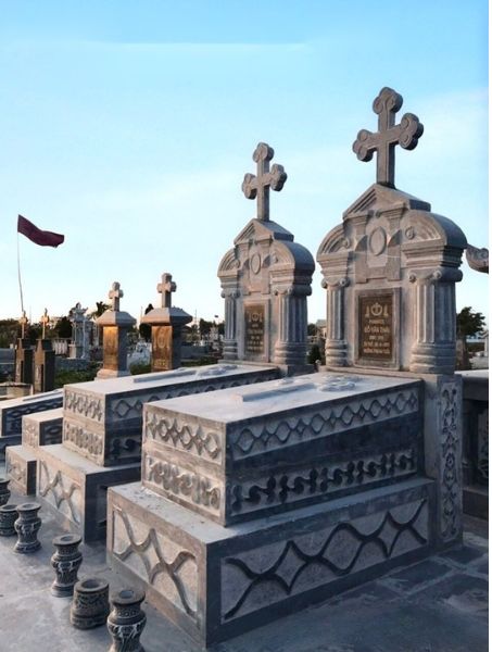 Với hơn 10 năm kinh nghiệm trong nghề, Đá Mỹ Nghệ Cát Tiến là đơn vị chế tác và thi công Lăng mộ đá công giáo đẹp, uy tín tại Ninh Bình. Công trình được chế tác tỉ mỉ bởi đội ngũ nghệ nhân lành nghề, kết hợp công nghệ CNC hiện đại, đảm bảo tính thẩm mỹ và độ bền cao. Đá Mỹ Nghệ Cát Tiến cam kết quy trình minh bạch, chi phí rõ ràng, tiến độ đúng hẹn, đồng hành cùng khách hàng trong suốt giai đoạn từ tư vấn đến hoàn thiện thi công.