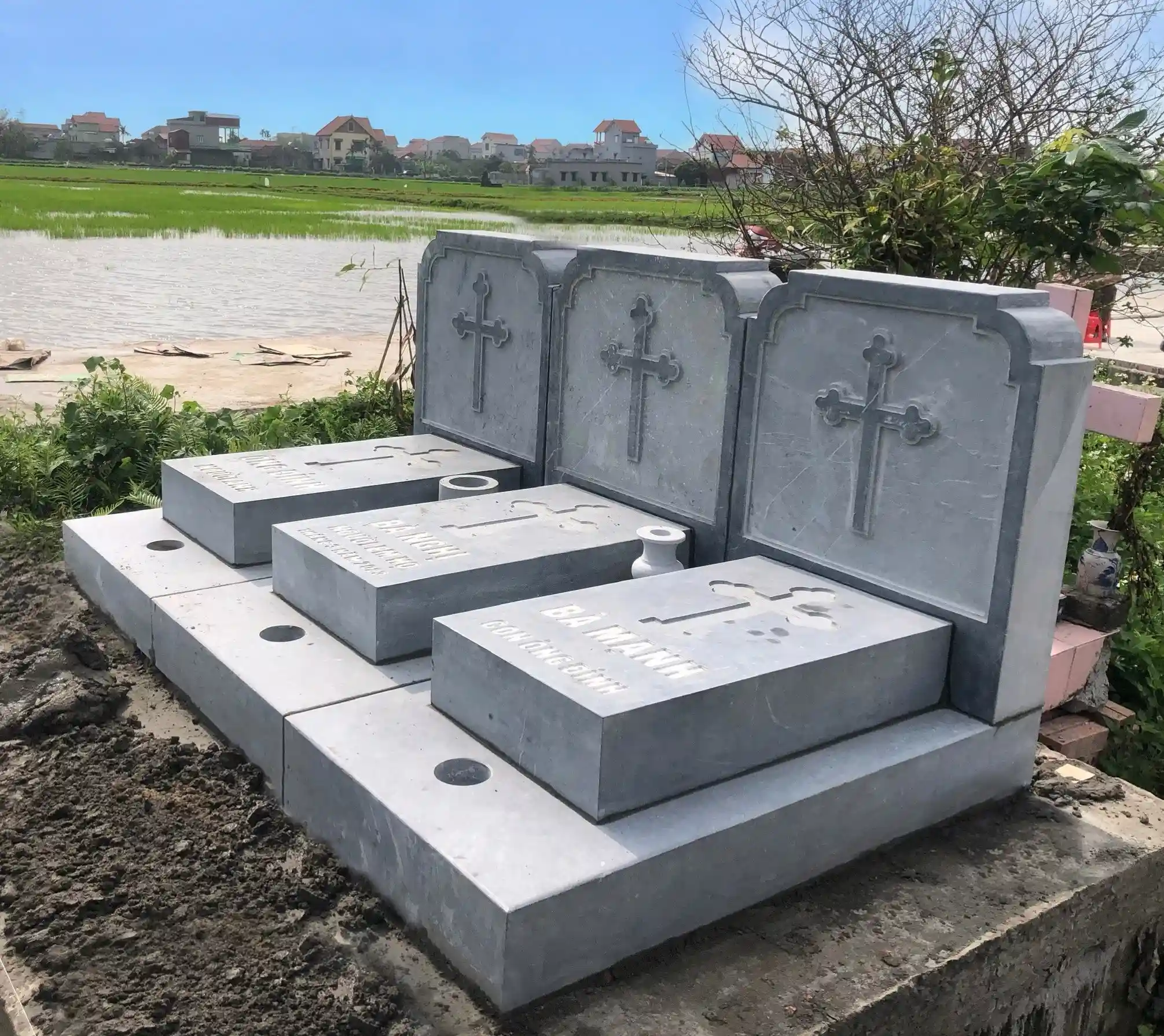 Mộ công giáo đá xanh rêu – CT43 là mẫu sản phẩm được Đá Mỹ Nghệ Cát Tiến chế tác và thi công tại Hà Tĩnh năm 2025 được chế tác từ chất liệu đá tự nhiên nguyên khối, hoạ tiết thánh giá trang nghiêm, thể hiện đức tin và lòng tôn kính Thiên Chúa.