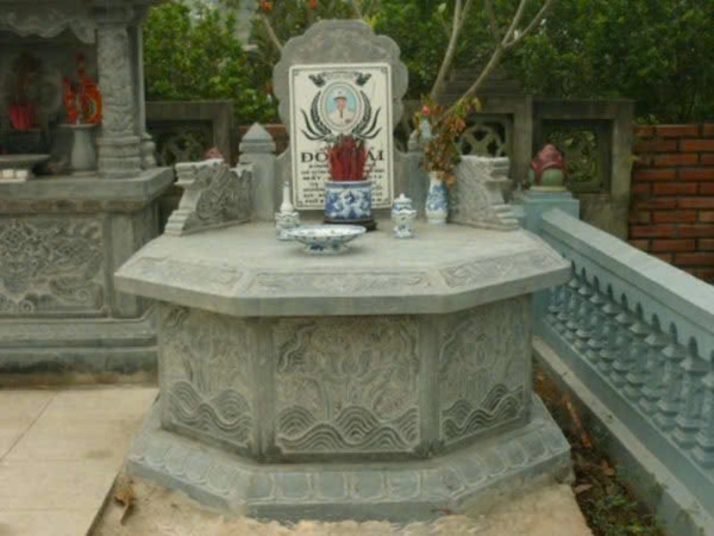Mẫu mộ đá bát giác chạm sóng nước là sự lựa chọn hoàn hảo cho các gia đình mong muốn tìm kiếm một mẫu mộ mang nét đẹp truyền thống, tinh tế và bền bỉ cùng thời gian. Với cấu trúc bát giác tám cạnh đối xứng tượng trưng cho sự cân bằng và bảo vệ toàn diện, sản phẩm mang ý nghĩa phong thủy sâu sắc giúp quy tụ linh khí và hóa giải điềm hung cho nơi an nghỉ.