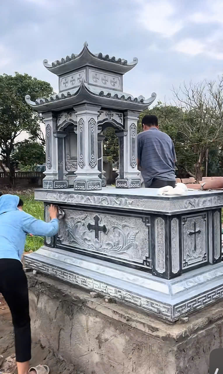 Mộ sử dụng đá tự nhiên chất lượng cao, bề mặt mài nhẵn – đánh bóng kỹ lưỡng, đảm bảo độ bền và tính thẩm mỹ lâu dài. Lăng mộ đá công giáo CT131 tại Quảng Xương – Thanh Hóa không chỉ là nơi an nghỉ yên bình cho người đã khuất, mà còn thể hiện trọn vẹn lòng hiếu kính của con cháu, góp phần tạo nên không gian an táng Công giáo trang nhã, thanh tịnh và tôn nghiêm.