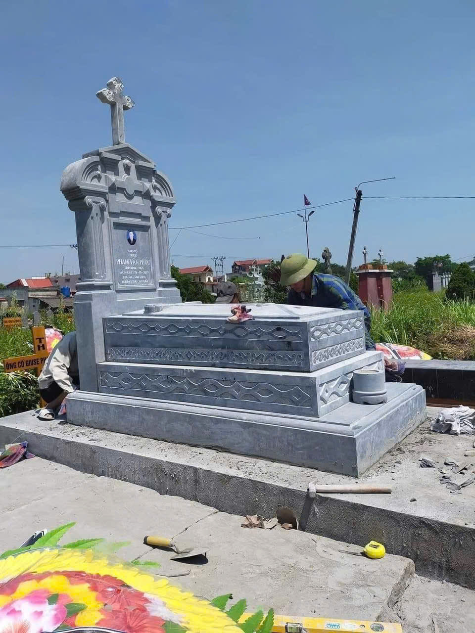 Gam màu đá xanh tạo cảm giác gần gũi, thanh tịnh, rất phù hợp với không gian an táng Công giáo tại Lý Nhân – Hà Nam, đồng thời thể hiện trọn vẹn lòng hiếu kính của con cháu.