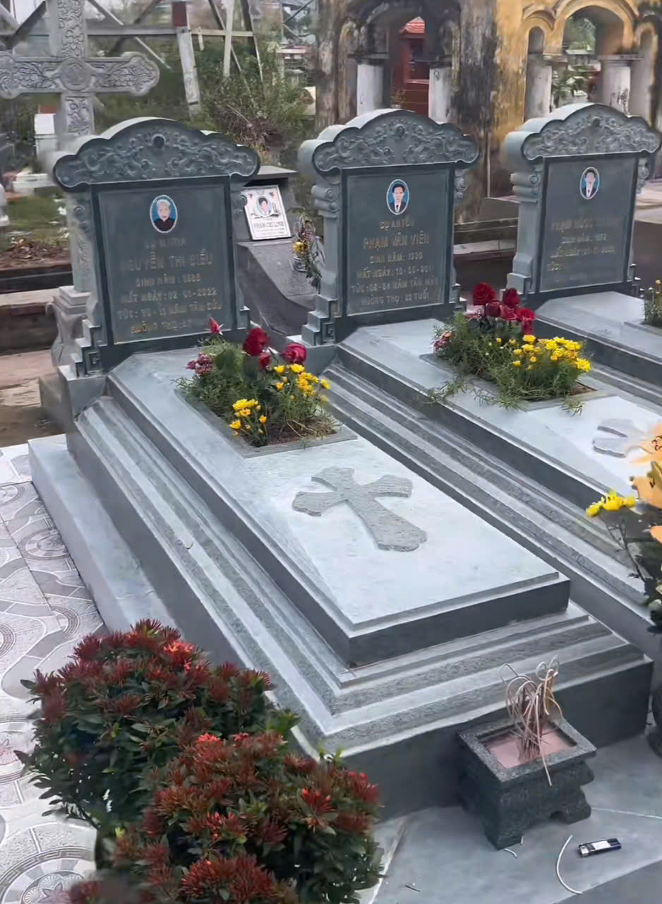 Gam màu xanh đen thể hiện sự vững bền và bình an, phù hợp với không gian nghĩa trang Công giáo tại Duy Tiên – Hà Nam.