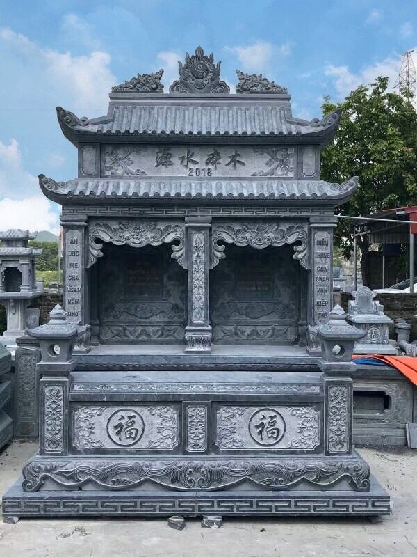 Lăng mộ đá đôi xanh đen hai mái đao CT77