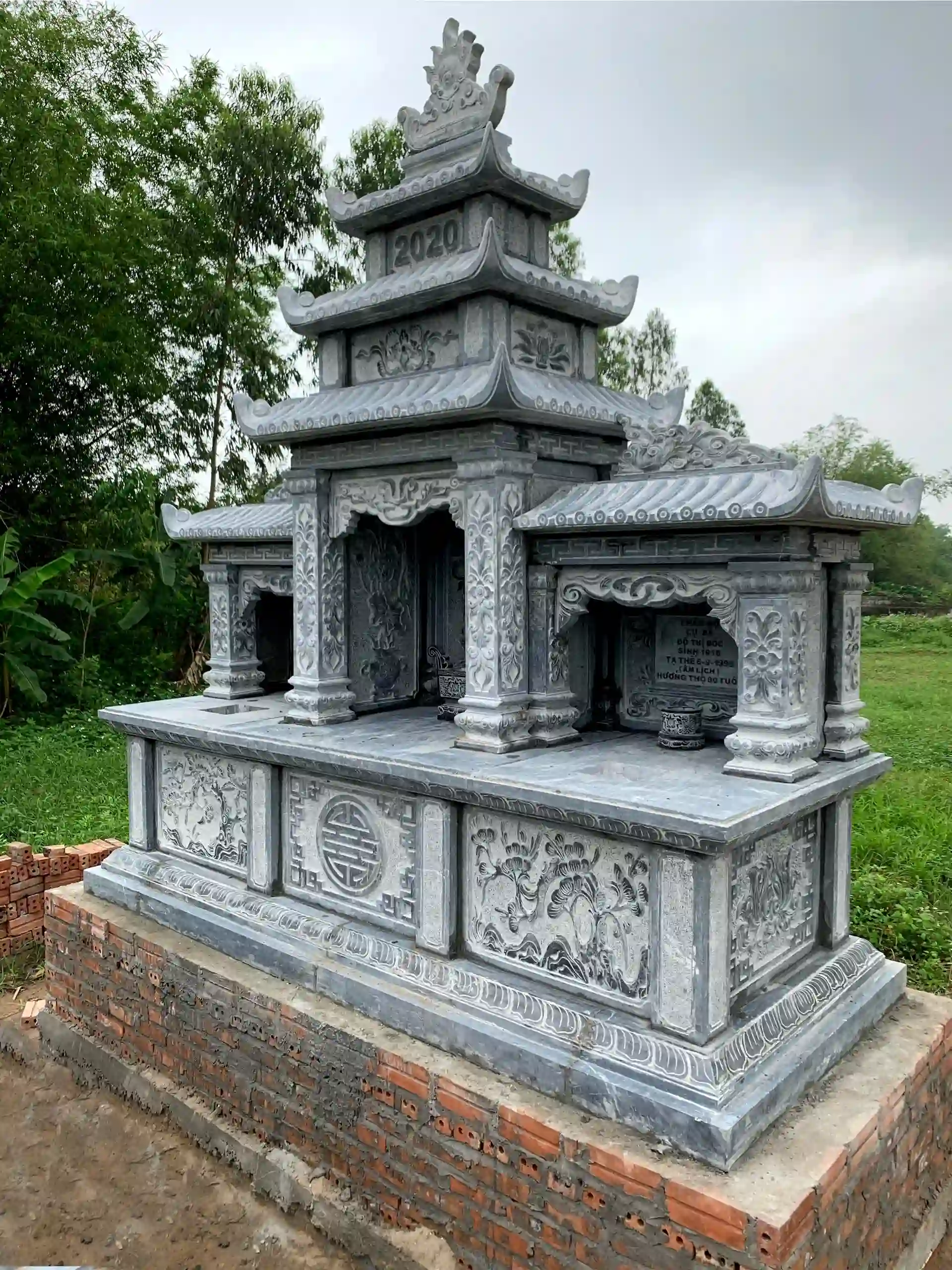- Hoa văn đá: Chạm khắc chữ thọ, tùng cúc trúc mai và năm thi công