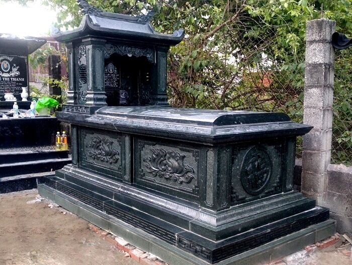 Sản phẩm được chế tác từ đá hoa cương granite đen – loại đá tự nhiên nguyên khối có độ cứng cao, bề mặt bóng mịn và bền màu vượt thời gian. Tông màu đen chủ đạo mang lại sự tinh tế, trang nghiêm, kết hợp với hoa văn chạm khắc sắc nét mang đến tổng thể linh thiêng, thể hiện ý nguyện của gia chủ cho người đã khuất.
