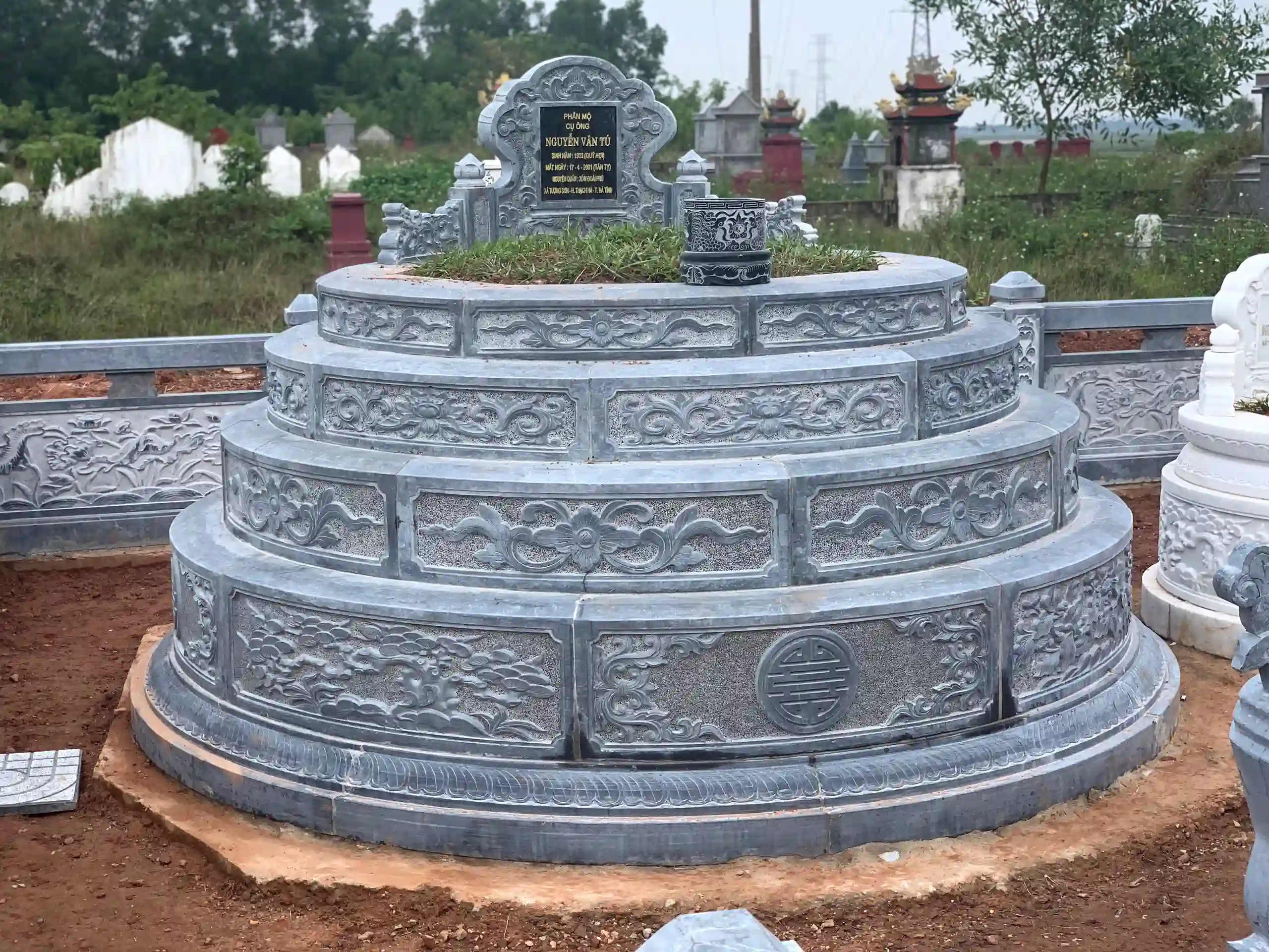 Sản phẩm được chế tác từ đá xanh đen tự nhiên, có sắc xanh đậm, bề mặt nhẵn, độ cứng cao và khả năng chống thấm tốt. Càng sử dụng lâu, đá càng lên màu trầm đẹp, tạo nét cổ kính, bền vững và gần gũi với thiên nhiên. Mộ tròn đá xanh đen phù hợp với gia đình muốn thiết kế mộ tinh gọn, nổi bật, đặc biệt tại khu đất đồi, gò hoặc nghĩa trang có diện tích hạn chế.