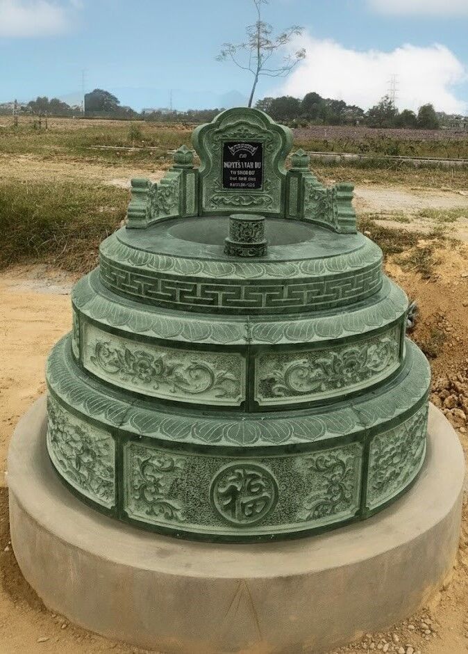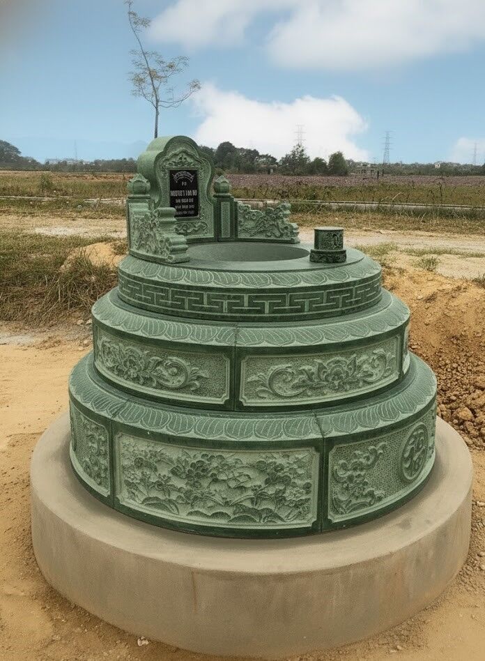 1. Giới thiệu sản phẩm mộ đá tròn xanh tam cấp xanh rêu