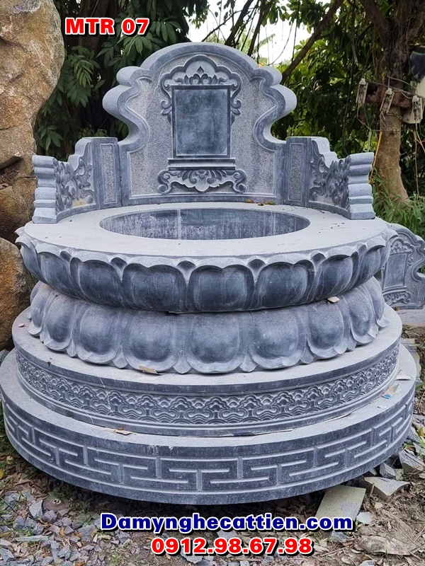 Mộ tròn đá hoa sen tự nhiên nguyên khối MTR 07